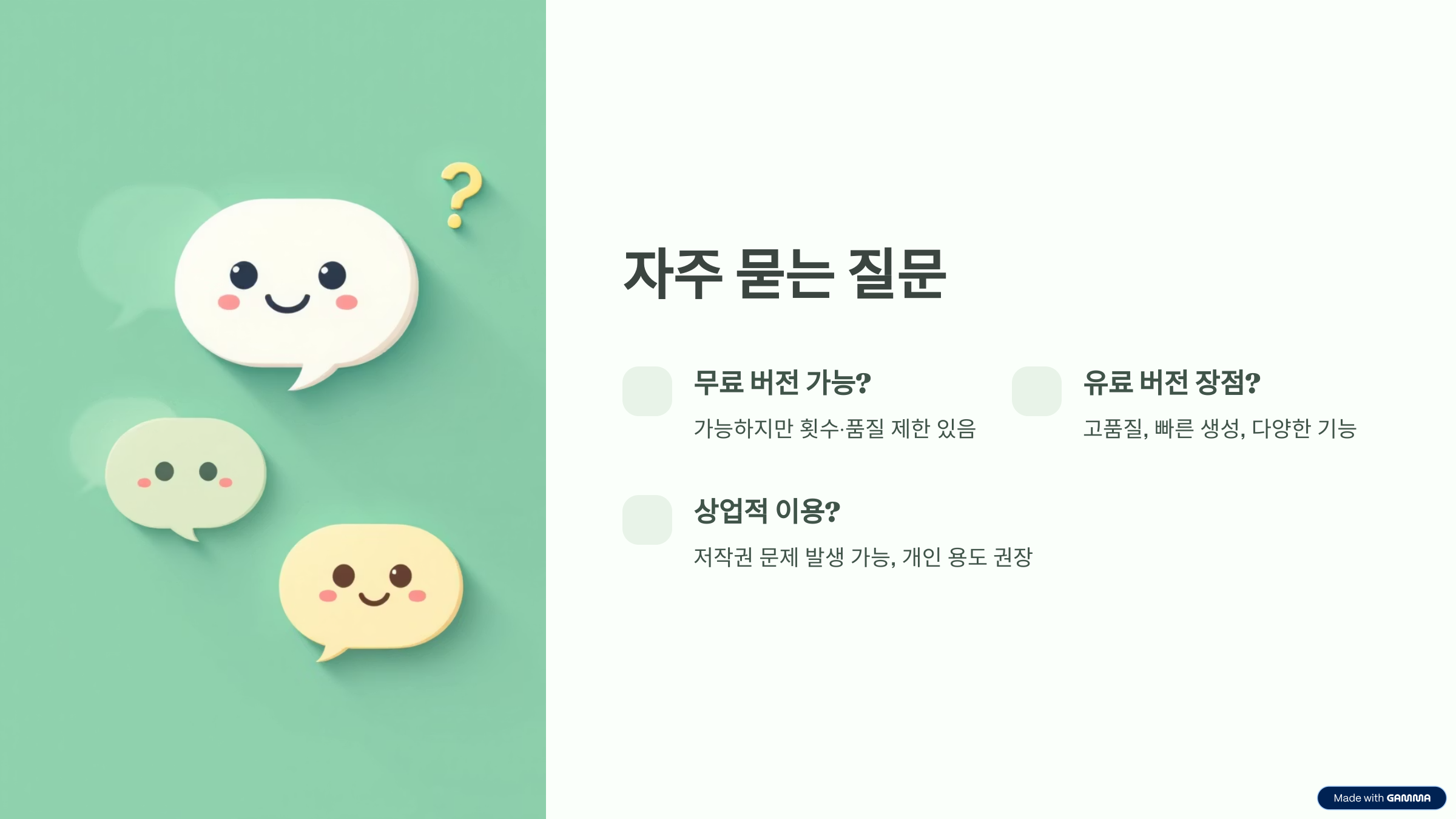 A. 꼭 그렇진 않아요. 무료 버전으로도 생성은 가능하지만 횟수 제한과 품질 측면에서 차이가 있어요.